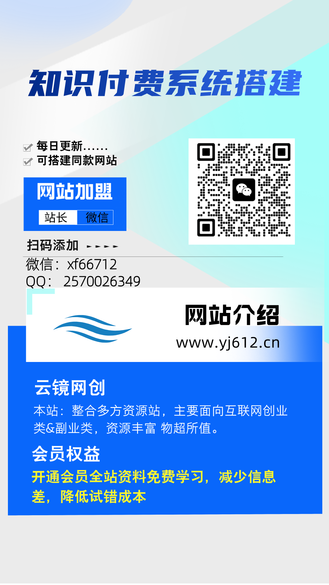 加盟云镜网创,加盟搭建同款知识付费资源网站,实现长期稳定被动收入~